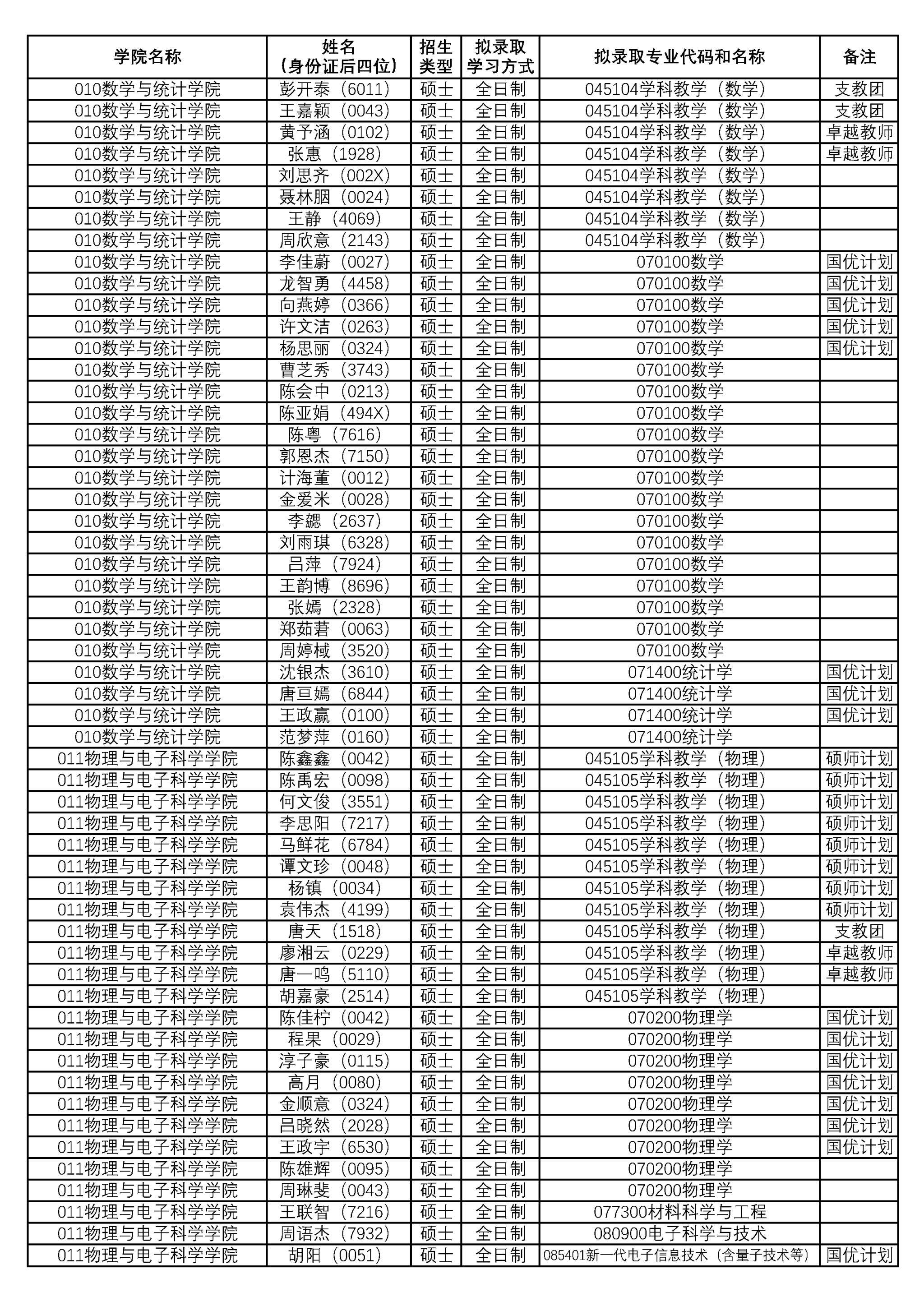 附:WilliamHill体育2026年拟录取推免生名单